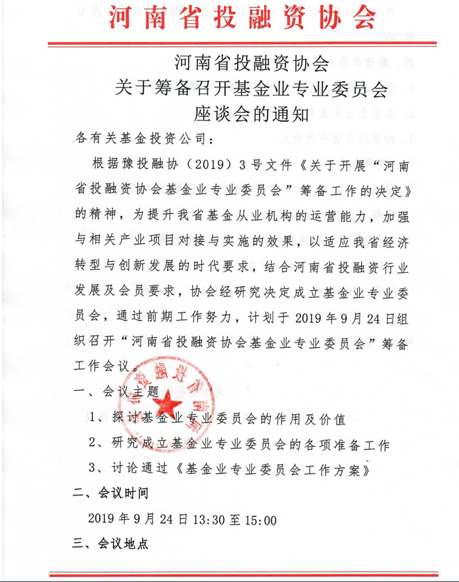 关于筹备召开基金业专业委员会座谈会的通知